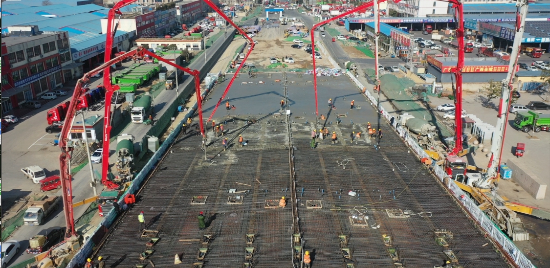 2020年12月18日23時,西中環(huán)大山路立交施工區(qū)開始首聯(lián)箱梁的澆筑,本次澆筑用時一天兩夜,混凝土用量2400立方,于2020年12月20日零時澆筑完成。