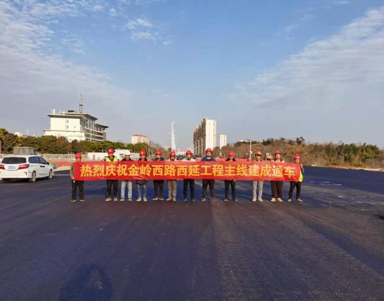 本工程自2020年3月份開工,項目人員克服了雨季土石方工程無法開展、原始地貌被外部因素破壞改變、高壓線改遷等重重困難,進行組織規劃及專家論證,積極協調各管理部門,緊抓天氣晴好的間隙,和時間賽跑,加班加點進行施工作業。目前,金嶺西路西延主線瀝青已全部施工完成,后續道路附屬工程正在緊張有序地施工。