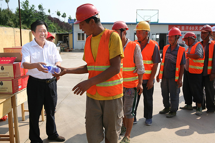 9月4日下午,市住建委組織開展了“中秋節(jié)送溫暖獻(xiàn)愛心”志愿服務(wù)活動(dòng)。市住建委副主任陳云祥帶領(lǐng)志愿者在我公司承建的臨工大橋工地,為奮戰(zhàn)在施工一線的工人送去了月餅、水杯等慰問(wèn)品。