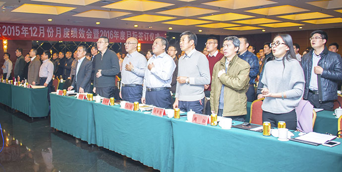1月5日,公司舉行12月份績效會暨2016年目標簽訂儀式。公司領導班子、中層干部及各崗位骨干118人參加會議。