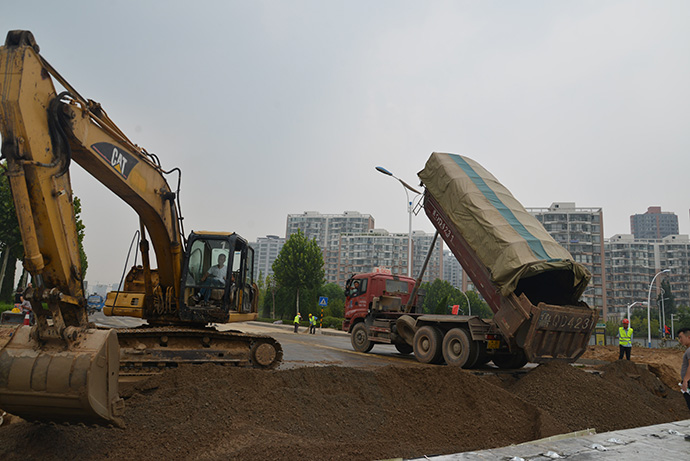 為保證廣大市民在周一早上的出行便利和安全,進一步提高通行條件,9月11日17點即進行了瀝青路面攤鋪施工。此次采用的ATB瀝青碎石具有較高的抗剪切強度與抗裂性能,在瀝青碎石冷卻至表面溫度60度以下后,進行6cmAC-13上面層施工。經碾壓完成,溫度降至60度以下,即清理現場,放行通車。
