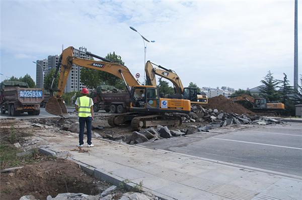 自9月30日晚桃源街封閉道路至10月7日中午安居街放行通車,共用時7天。施工人員放棄節假日休息,連續七天七夜奮戰在工地。特別是期間連續兩天的降雨,項目部為盡快恢復通行、降低交通影響,冒雨堅守工地,保質高效完成了施工任務。