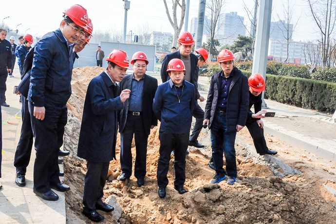 2月28日,市政府副市長常紅軍視察集團公司承建的三十萬噸供水主管道應急替代工程,住建局局長張衛強,集團董事長、總經理龐玉坤等陪同。