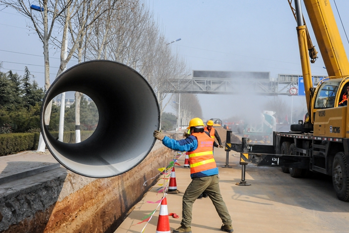 三十萬噸供水主管道應急替代工程沿沂蒙路鋪設,全長6.1公里,管道采用直徑1.6M球墨鑄鐵管,投資預算約4600萬元,于2月25日正式開工建設。