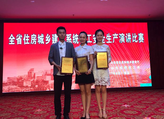 6月6日至8日,全省建設系統“中國夢·勞動美—喜迎黨的十九大”和“安全生產”為主題的演講比賽在棗莊市舉行。集團職工宋瑩瑩、蘇韻涵、劉昌航代表臨沂市住建局參加了此次比賽。其中,宋瑩瑩榮獲工會干部組個人一等獎,蘇韻涵、劉昌航榮獲一線職工組個人一等獎,集團榮獲團體金獎、優秀組織獎和精神文明獎。