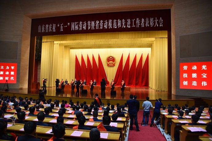 4月27日上午,山東省慶祝“五一”國際勞動節(jié)暨省勞動模范和先進工作者表彰大會在濟南舉行。集團黨委書記、董事長、總經理龐玉坤在會上接受表彰,被省委、省政府授予“山東省勞動模范”榮譽稱號,并作為勞動模范代表上臺領獎。
