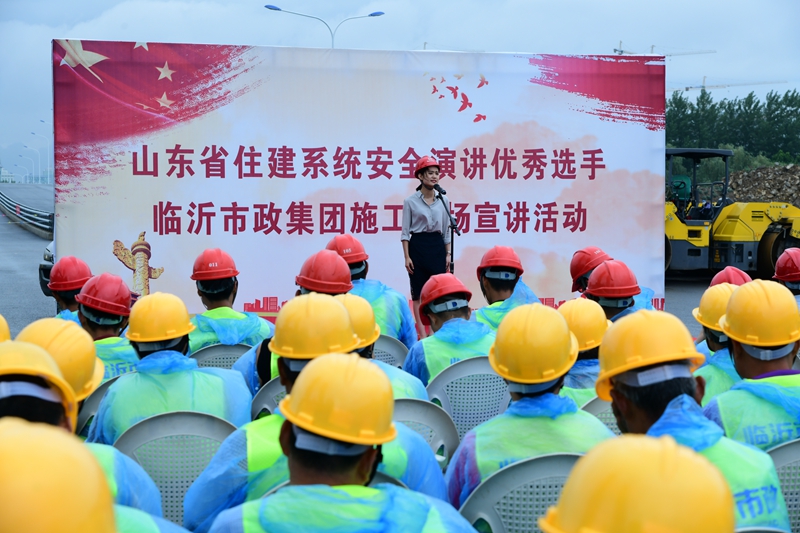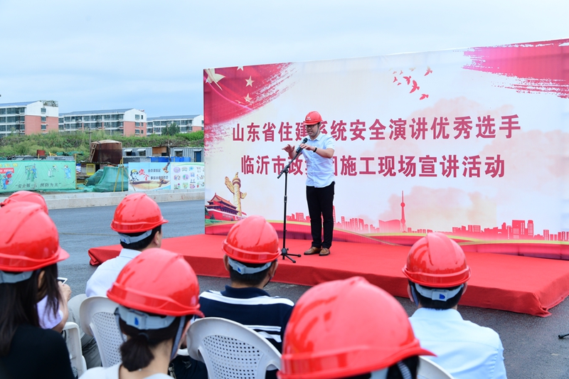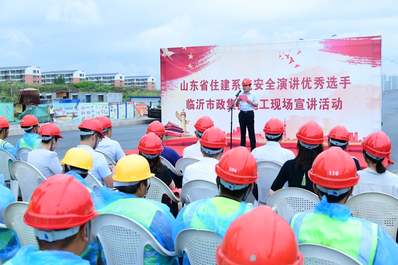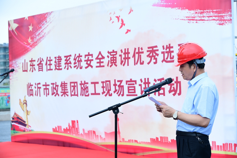 6月26日,山東省建設工會組織全省住建系統安全演講優秀選手,到集團火車站南片區道路及管廊工程施工現場進行宣講。省住建廳總工程師顧發全、省建設工會主席薛希法、省住建廳質量安全監督處調研員姜經文、省建設工會副主席吳柏坡出席宣講活動,并代表省住建廳慰問集團一線員工、發放慰問物品。市住建局黨委委員、工會主任劉興旺、市市政工程建設處副處長鄭培廣、集團董事長、總經理龐玉坤等陪同,工地現場120名一線員工認真聆聽5位優秀選手的精彩演講。