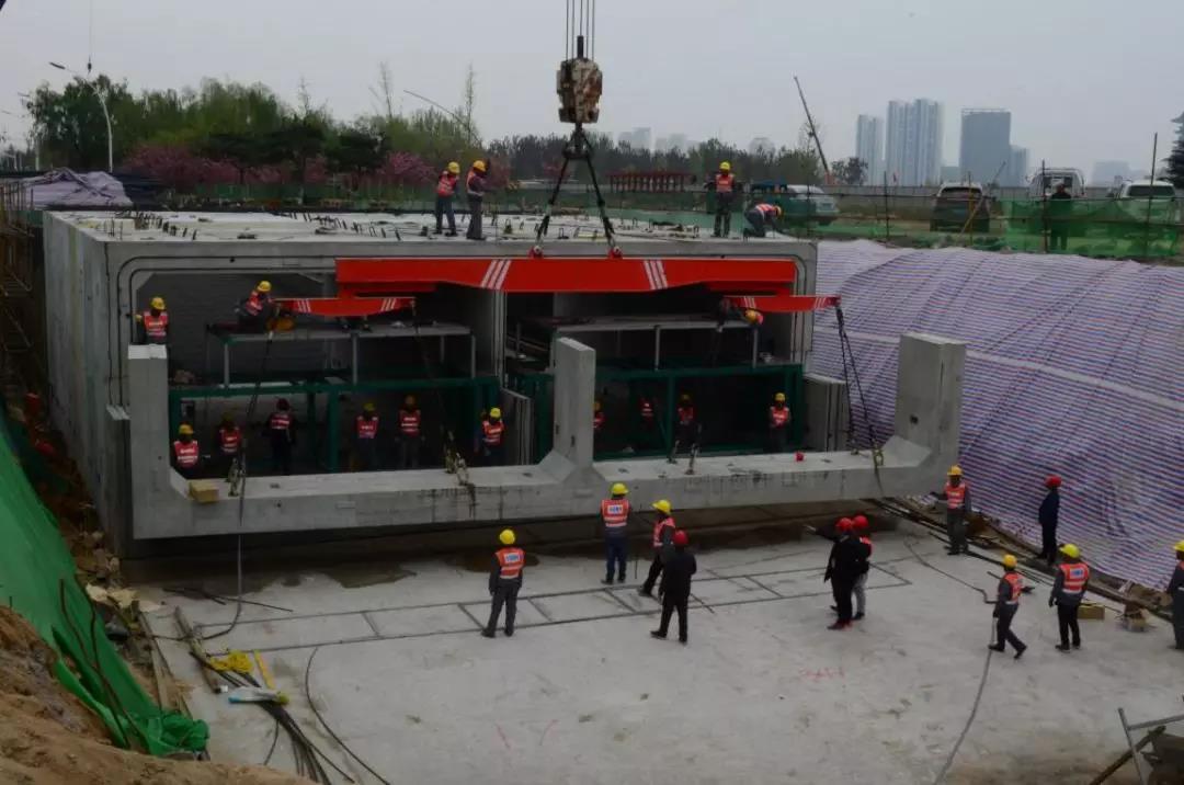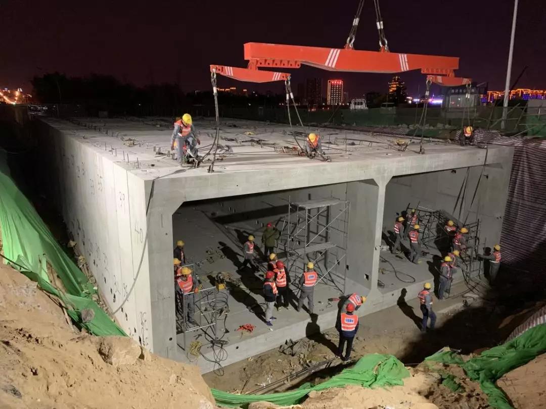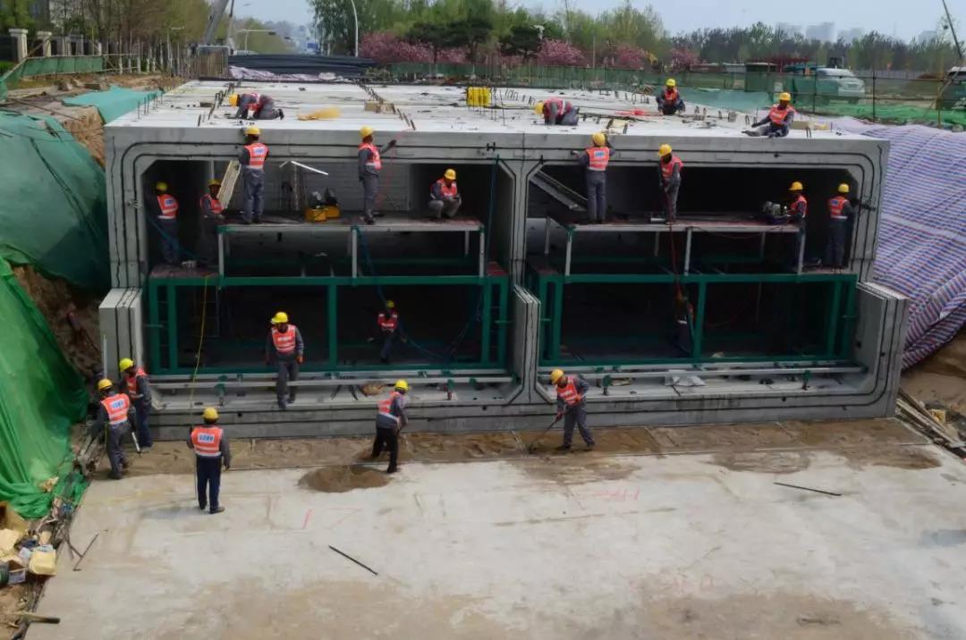 4月8日,由臨沂市政集團(tuán)有限公司承建的臨沂市蒙山高架路北延工程一標(biāo)段臥虎山路下穿通道裝配段一期在計(jì)劃時(shí)間內(nèi)順利完工,再次展現(xiàn)了臨沂速度。臥虎山路下穿通道裝配段主體采用臨沂市政眾信建材公司所生產(chǎn)的連續(xù)雙倉7米大跨徑裝配式箱涵,此次連續(xù)雙倉大跨境箱涵的裝配式施工也是國內(nèi)首例。