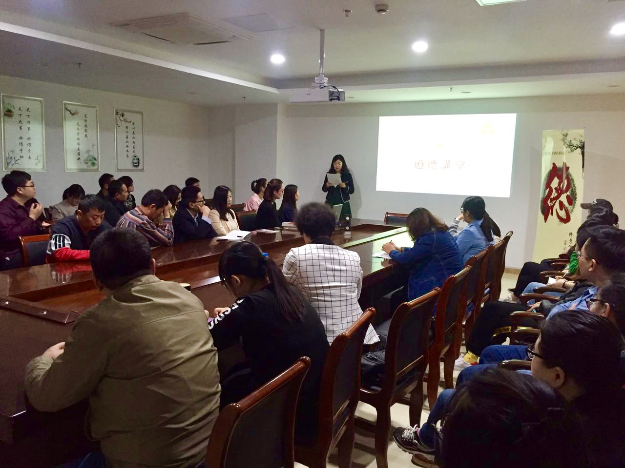 本次活動由黨群部劉海晨主持,各部室、各生產單位的43名黨員群眾職工代表參加。此次活動圍繞培育和踐行社會主義核心價值觀開展,突出“奉獻愛心”這一重點。此次道德講堂活動共分為“做反省”、“唱歌曲”、“學模范”、“誦經典”、“發善心”、“行禮儀”、“送吉祥”、“做善事”八個環節。活動現場,全體職工合唱歌曲《愛的奉獻》,觀看了石門縣皂市鎮中心學校9名老師為重病學生輪流義務送教上門的故事。