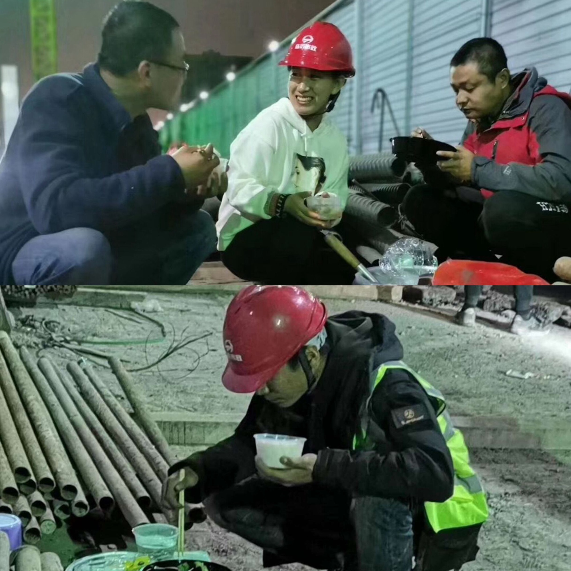 箱梁澆筑是場持久戰(zhàn),一線人員在前線緊鑼密鼓忙碌不停,為保證一線人員的體能供應(yīng),后勤小組也不閑著,為他們做好了精美可口的飯,保證他們吃上一頓熱氣騰騰的飯菜。心里暖了,干勁更足了。在這樣一個緊鑼密鼓的施工夜晚,有一名年輕的小伙,生日是在首聯(lián)箱梁的澆筑值班中度過的,蹲在支架旁邊吃一頓加班餐,就是他25歲的生日晚宴,轟鳴的機(jī)械聲,就是對他生日的聲聲祝福。他叫張青浩,現(xiàn)任潤揚路項目副總工。作為項目副總工,他比別人更忙碌。