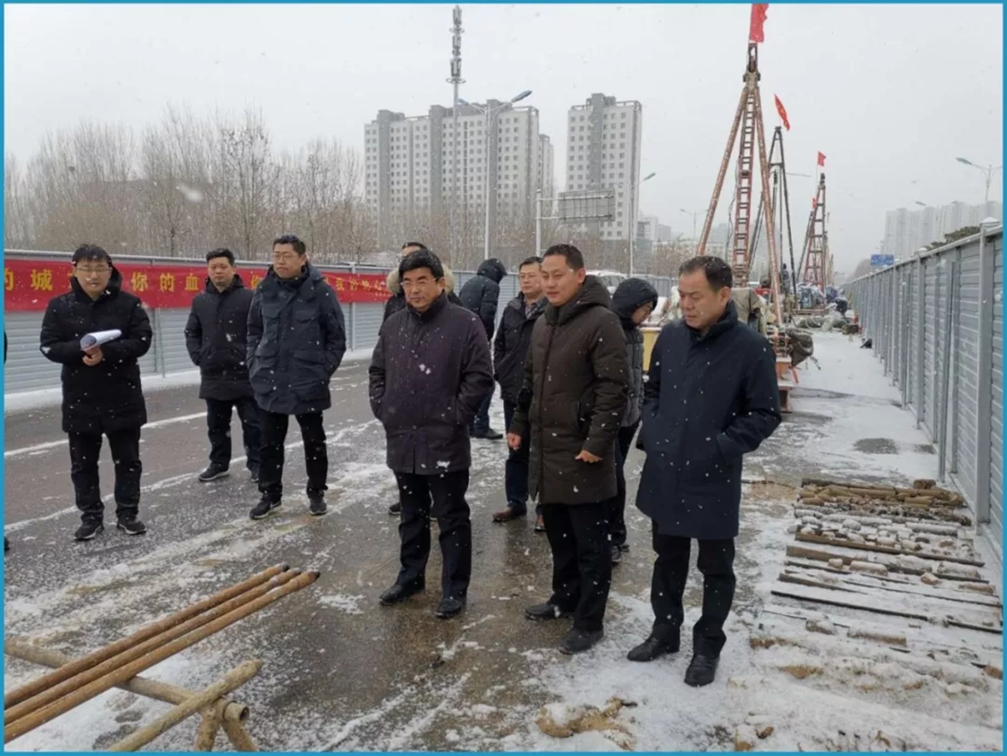 2月18日傍晚,伴隨著新年后的又一場大雪,第一棵樁基已經成孔,準備下鋼筋籠灌注混凝土,項目全體人員按照各自分工堅守在工地崗位上,沒有具體工作分工的施工技術人員也都趕到現場學習。第一棵樁基鋼筋籠長32米,需要分為兩節先后起吊后再拼接。直徑32的螺紋鋼一共有112根,須采用直螺紋套筒一根根的分別對接、緊絲,這一過程足足持續了6個多小時。此時,雪水打濕了衣服,卻沒有一人退縮,因為每個人都知道,蒙山高架北延工程是民生工程,工期緊迫,冒雪灌樁我們能干,而且也能確保工程的質量與安全。在此情形下,工地上依舊可見忙碌的施工一線人員和鉆孔的機械。雪越來越大了,一層銀霜為一個個忙碌的背影加了一身衣裳,銀裝素裹下,包裹著一顆顆熾熱的心。他們熱情洋溢的臉上流露出動人心弦的笑容。隨著一聲“好”字在工地上響起,所有人都跟著歡呼起來。