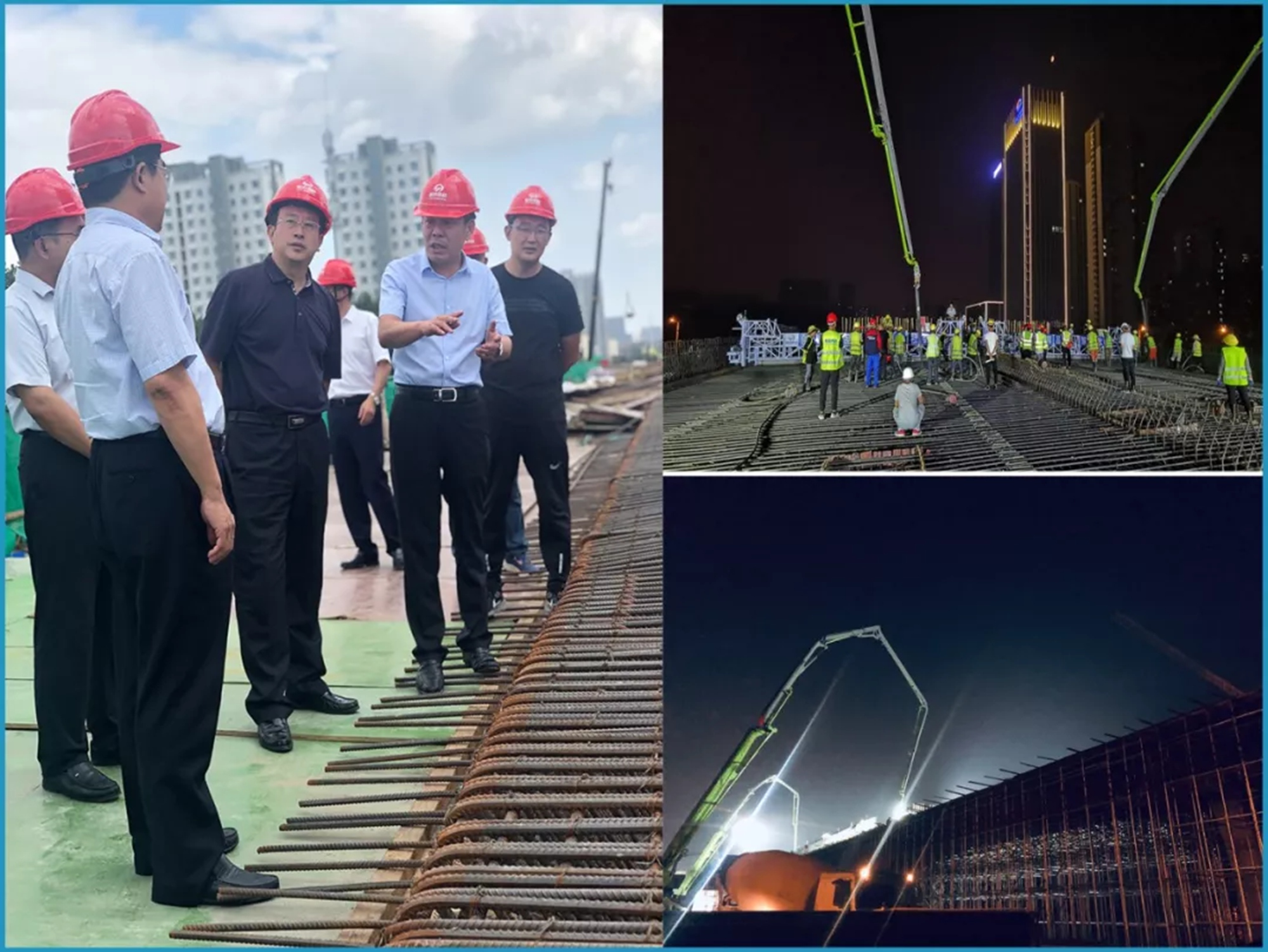 在整個箱梁澆筑的過程中,項目部全體人員發揚連續作戰、不怕苦不怕累的工作作風。十月份單月澆筑箱梁混凝土達3萬余方,尤其是在澆筑第11聯箱梁的時候,混凝土一次澆筑方量達5000方,為歷年來臨沂市政橋梁箱梁單次澆筑方量最大的一次,在蒙山高架項目全體施工人員不懈努力下,終于,歷經50小時,順利澆筑完成。