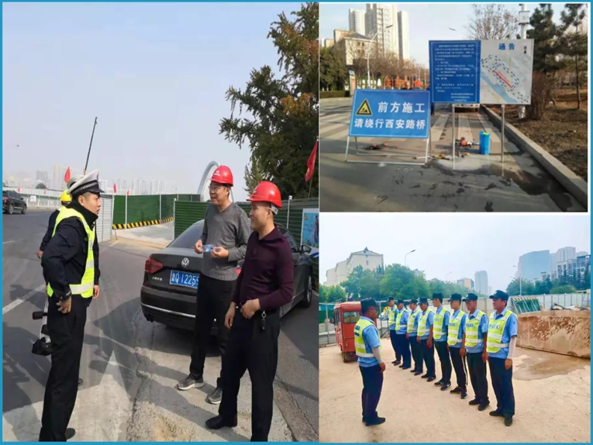 蒙山高架路北延工程一標段南接蒙山高架和祊河橋,且與臥虎山路、北京路、武漢路、南京路、長沙路交匯,人口密度大,車輛通行數量多,如何在不封閉現有蒙山北路的情況下正常施工,是工程面臨的難題之一。為了盡可能降低施工對周邊市民的影響,項目部在工程建設初期編制了《道路施工交通導行方案》,設置了相關的交通導行警示標識,同時與交警部門合作,購買并安裝了兩臺“高空瞭望”交通監控設備,接入臨沂市道路交通監控平臺;在各路口分別安排4-6名交通疏導員每天高峰期時段疏導交通,以緩解交通壓力,得到了交警部門和市民的充分理解和認可。