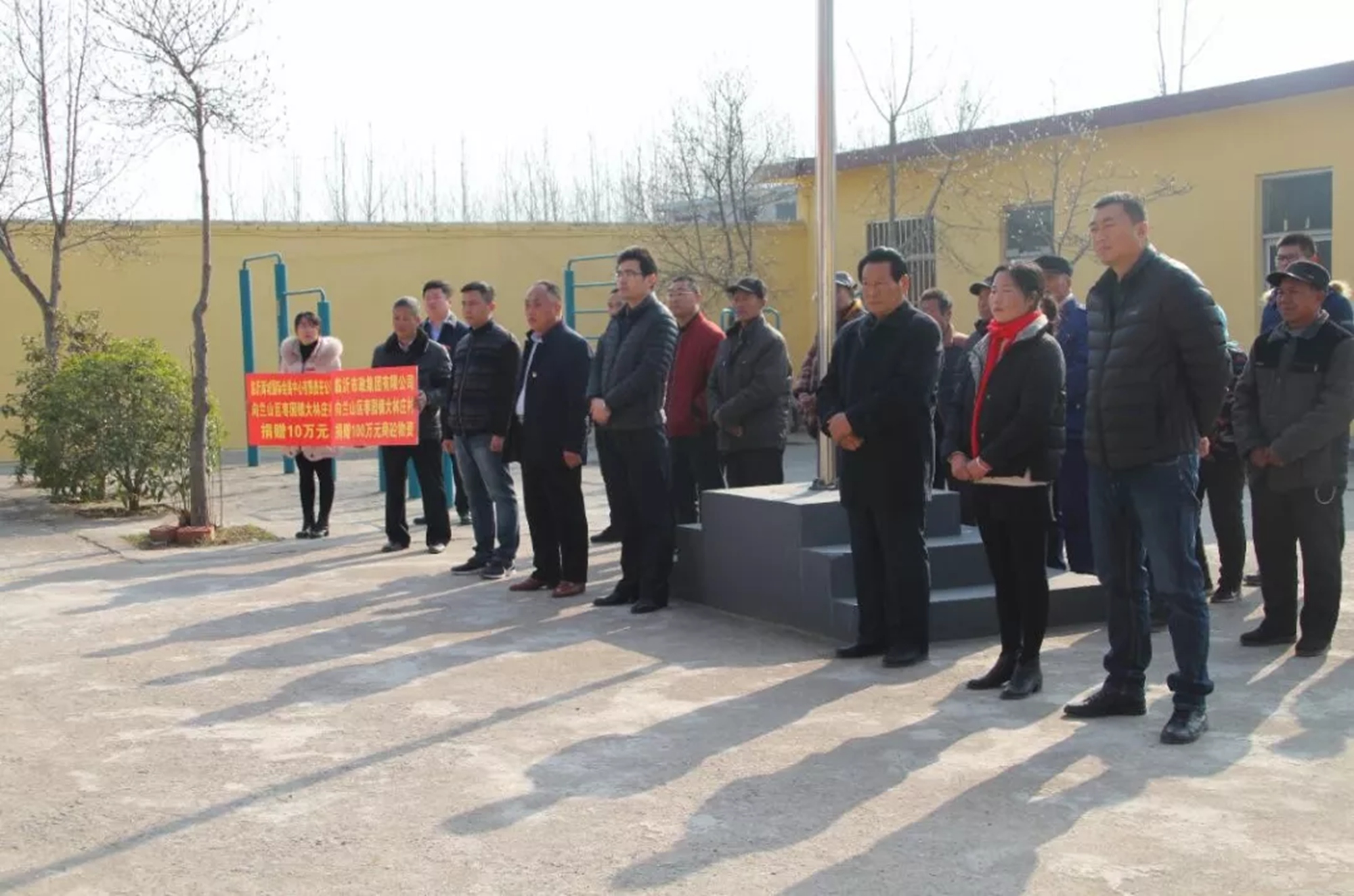 12月5日,在棗園鎮(zhèn)大林莊村村委舉行臨沂市政集團(tuán)有限公司、臨沂商城國際會展中心有限責(zé)任公司向大林莊村捐贈儀式。蘭山區(qū)領(lǐng)導(dǎo)馬鳳印、劉兆燕、魏云廣,棗園鎮(zhèn)領(lǐng)導(dǎo)韓殿永、王遠(yuǎn)東、魯同華出席儀式。集團(tuán)副總經(jīng)理沙攀峰,建材公司經(jīng)理劉成偉、眾信商砼經(jīng)理龐成磊出席捐贈儀式。