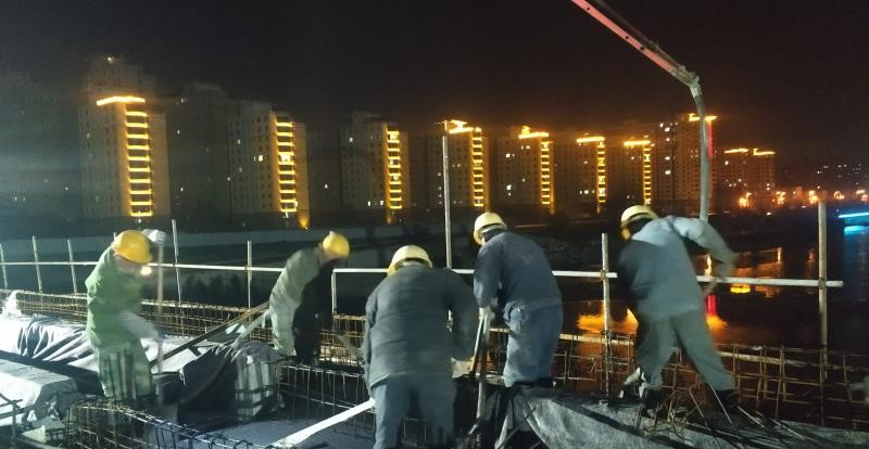 3月16日晚9點(diǎn)的沂河上,倒春寒的小風(fēng)呼呼地刮著,但整座橋上卻燈火通明——今晚要進(jìn)行的是沂蒙山路沂河大橋第一個(gè)合龍段澆筑。