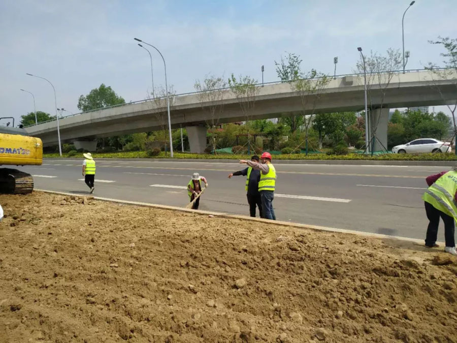 為搶趕工期,園林公司項(xiàng)目部協(xié)調(diào)組織破碎、外運(yùn)、回填土方,五一假期期間完成南岸的景觀綠化,保證5月份工程整體達(dá)到交工驗(yàn)收標(biāo)準(zhǔn)。陷泥河綜合整治工程已完成河底清淤,樣板段正在進(jìn)行人行道板鋪裝,即將開始大面積苗木栽植工作。