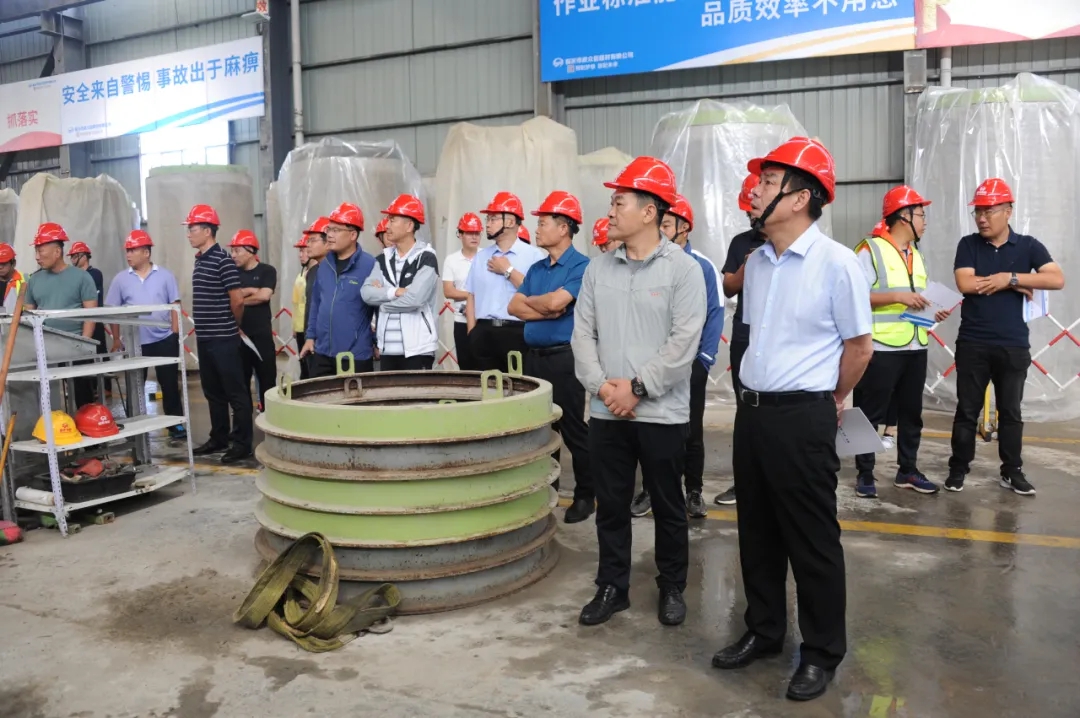 6月27日至29日,集團董事長龐玉坤帶領集團領導班子成員、各部室單位主要負責人,實地查看了武漢路祊河橋、大山路立交及大山路拓寬改造工程、揚州潤揚路快速化改造工程、建材園區等18個內外埠市場集團在建重點項目、廠區,聽取了有關情況匯報,就質量、進度、安全文明措施、防汛準備等進行了現場督導。